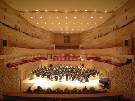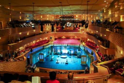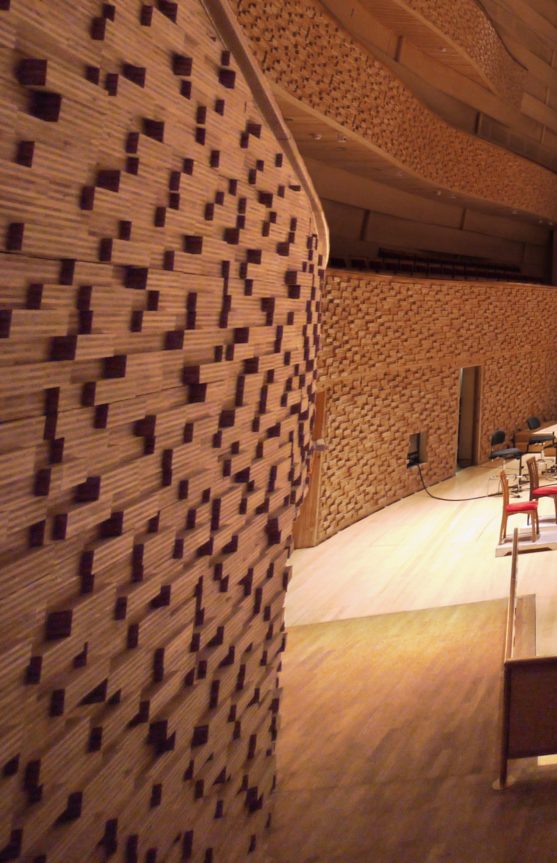 This 1100-seat concert hall was designed and built on an extremely short schedule: planning began in August 2004 and the gala opening took place slightly more than two years later in November 2006. This was made possible by the private rather than public nature of the funding – the absence of government funding in this project allowed for quick decision making. The hall uses the historic façade of the warehouse, and the long and narrow site resulted in a shoebox-style hall with a steep audience rake, with seating areas to the side and rear of the stage, reminiscent of an arena-style hall.